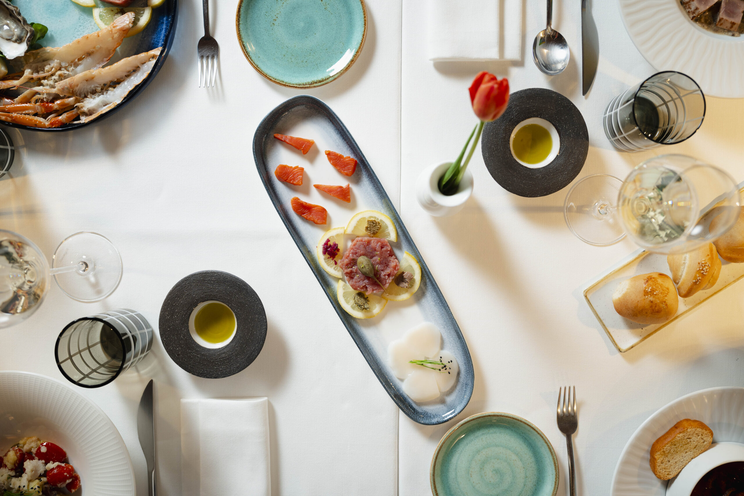 Il nostro menù: piatti che rispettano la stagionalità e valorizzano il mare con precisione e sensibilità, esaltati da una cantina ricca di etichette pensate per completare ogni boccone.